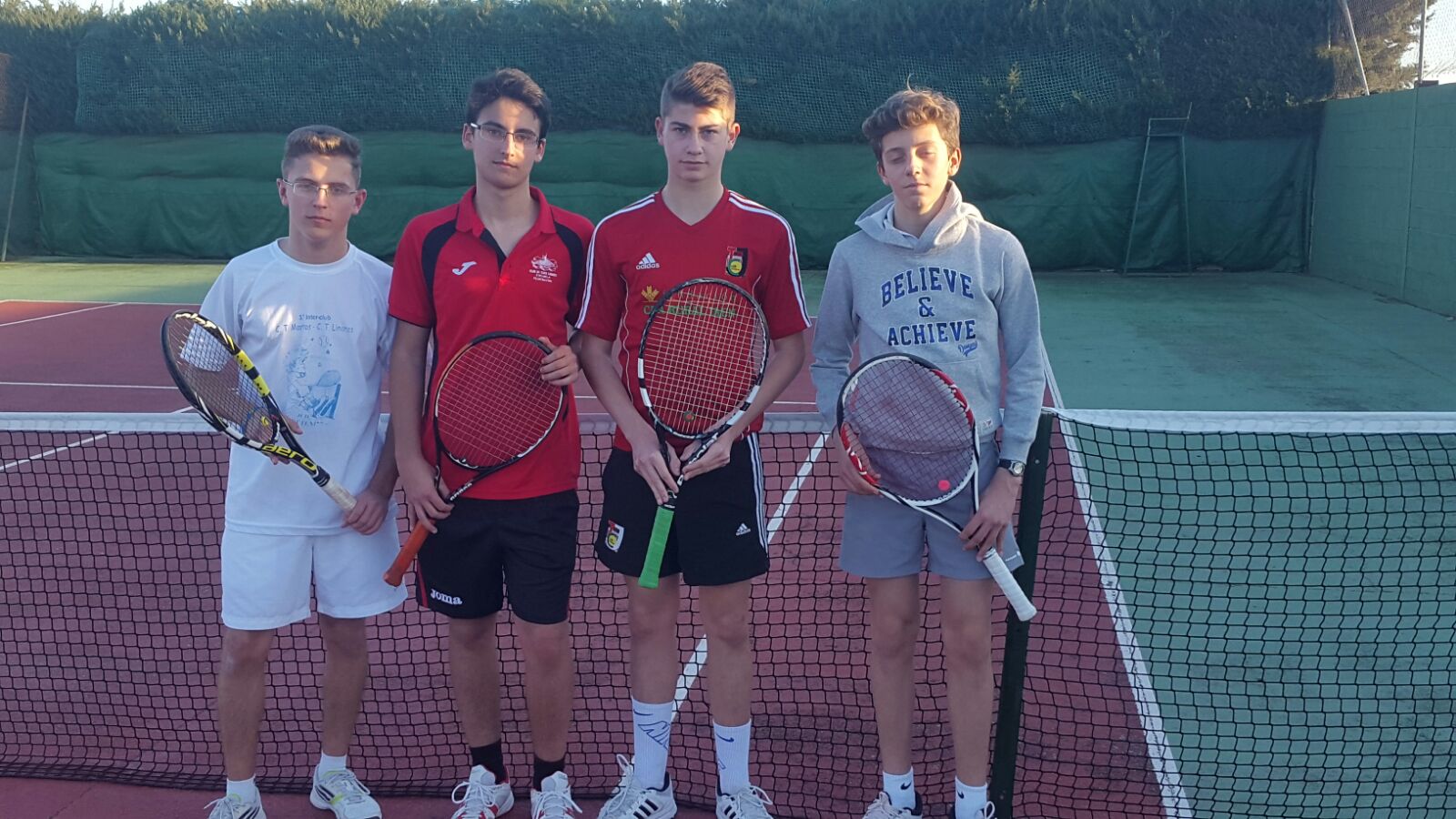 Este Domingo perdimos en casa contra el C.T.Benalmadena,estamos en una fase en la que el equipo se esta regenerando y es normal pagar esa circunstancia, lo positivo es que están saliendo cara nuevas y vienen con ilusión y ganas. Aunque jugamos en categoría Junior nuestro equipo lo forman en su mayoría jugadores cadetes y algún infantil. Seguimos evolucionando, gracias a todos por vuestro esfuerzo y compromiso (Jorge, Pablo, Miguel, Fabian, Alex Vilchez y Gonzalo). Nos vemos en la próxima jornada contra el Campus T.C. de Granada.