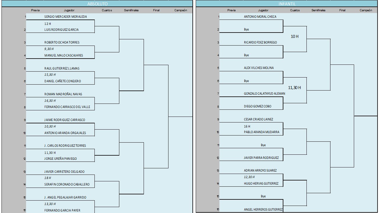 CUADROS CIRCUITO OLIVAR - TORNEO C. D. TENIS JAEN